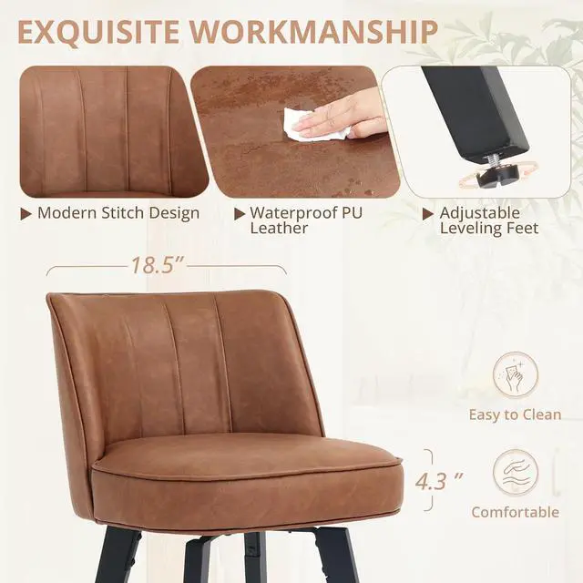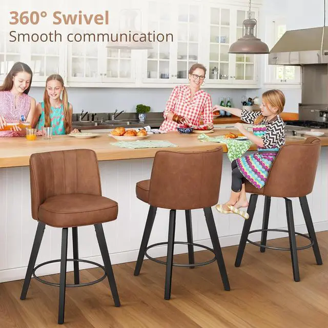 360° Rotating Seats: The rotating bar stools can fully rotate 368 degrees, allowing users to adjust to any position; this design enables easy interaction with others without the need to stand up, offering added convenience.