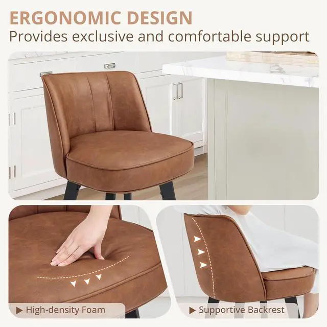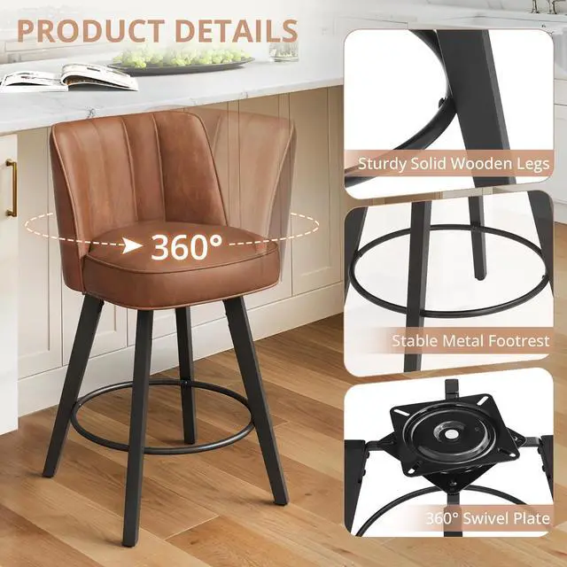 Comfortable Bar Chair: High curved backrest conforms to body structure for excellent back support; wide cushion enhances seating comfort; wood legs are more durable; built-in foot pedals on the base offer extra support, stability, and comfort.