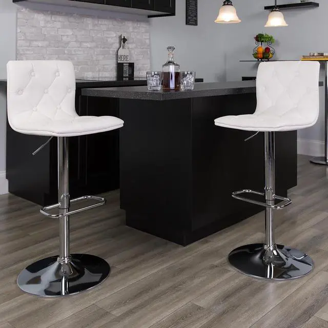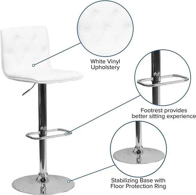 Cushioned and beautiful, this adjustable height stool gives your home a chic modern style that your guests will envy. Use at counter or bar height and always have the perfect fit while the embedded plastic ring ensures the safety of your flooring