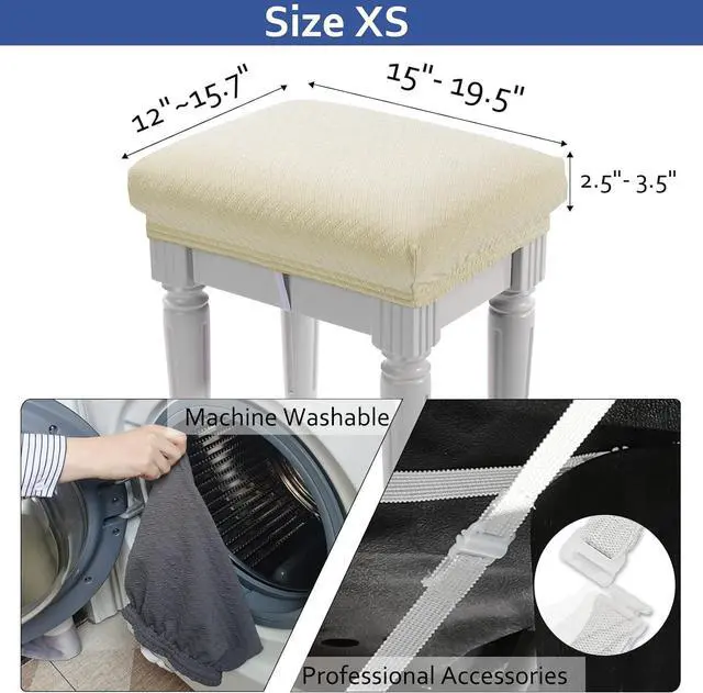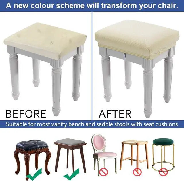 • FitRectangular Size is fit for (15"- 19.5")L x (11.8"- 15.7")W x (2.5"- 3.5")D vanity stool or saddle stool. Please measure stool seat size before placing order.