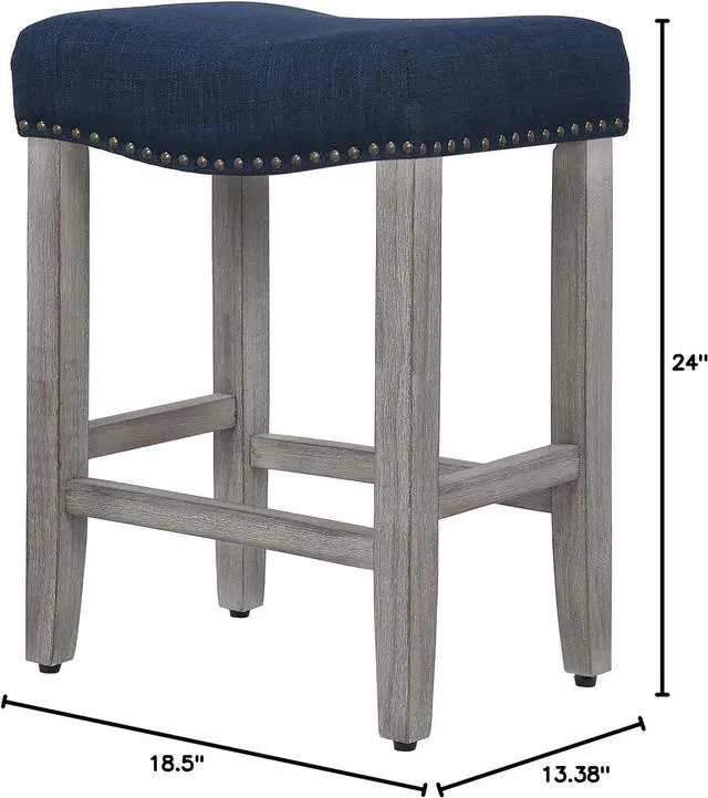 WO Home Furniture Counter Height Bar Stool Set of 2 PCS 24" Backless Saddle Seat Barstool w Antique Gray Legs (Navy Blue)