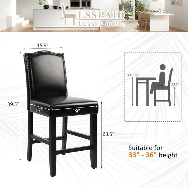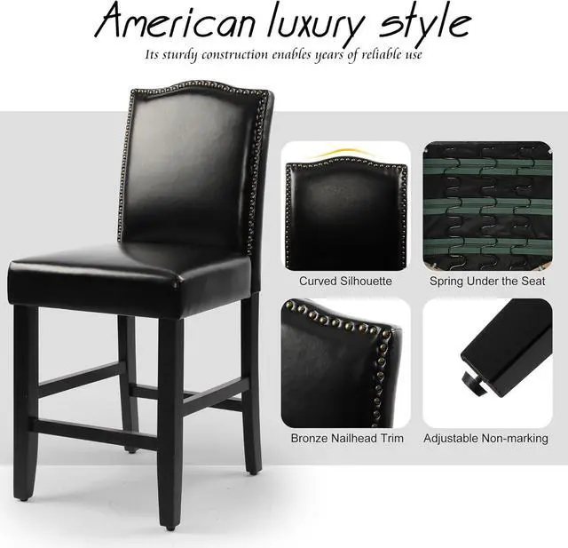 Easy to Clean: The top of the seat is covered with wear-resistant and breathable PU leather, which is easy to clean and very comfortable to sit on. Counter height chairs PU material can also prolong the use time