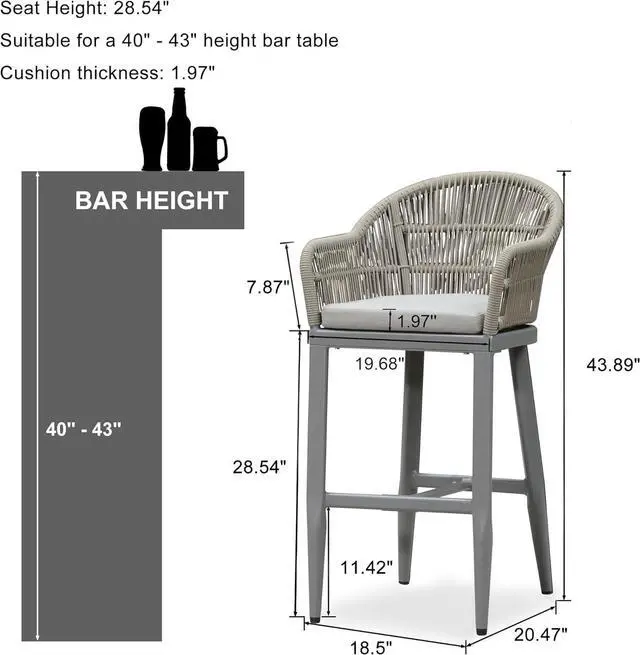 Note: 28.54 " seat height is suitable for a 40" - 43" height bar table.
