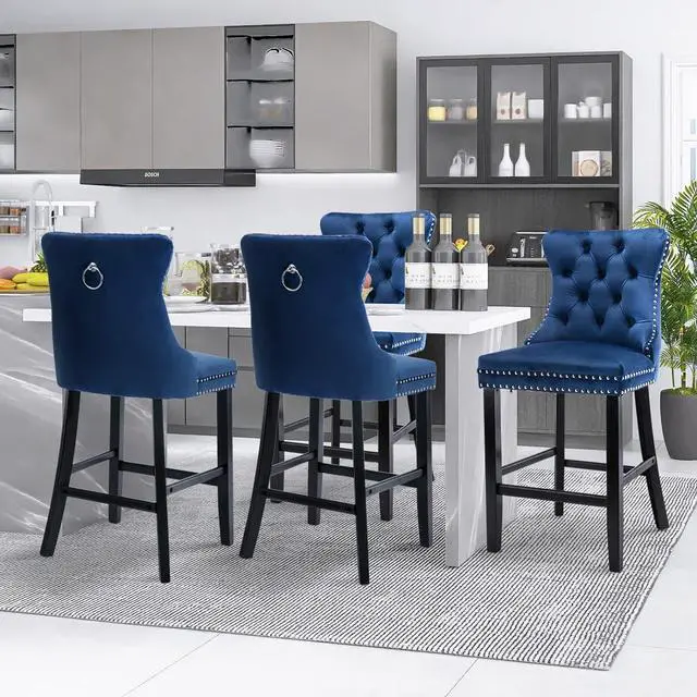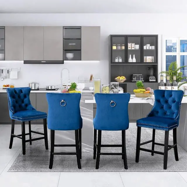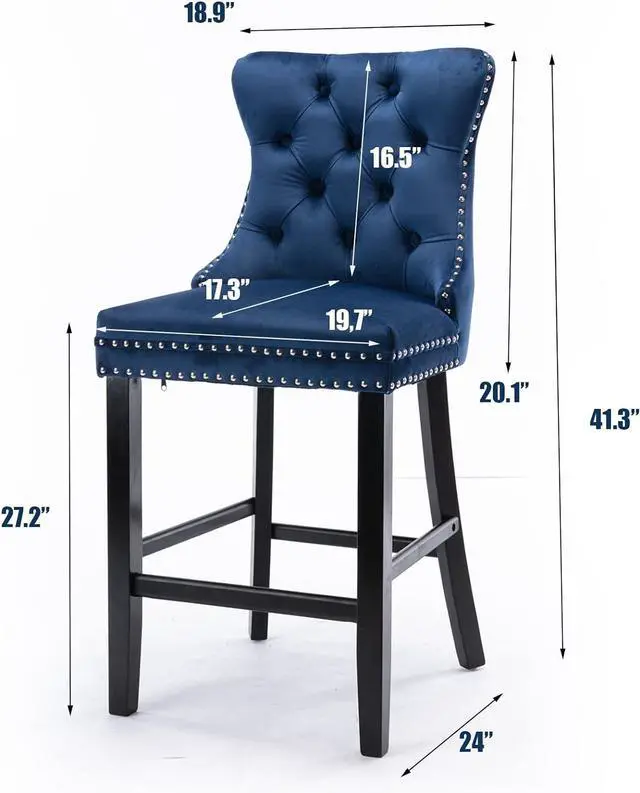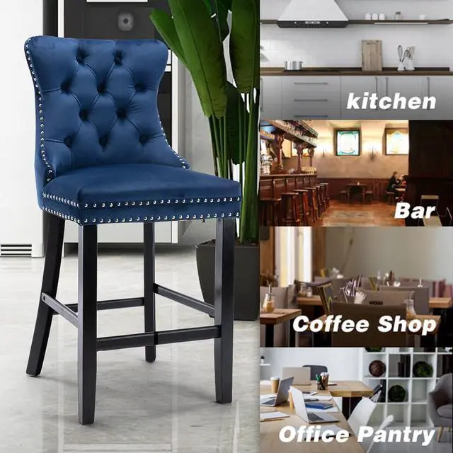 ERGONOMIC DESIGNThe bar chairs feature soft velvet upholstery seating for a great sitting experience. And the ergonomically designed high backrest and footrest provide more support for your body, allowing you to sit relaxed and secure. The 27.2 " seat height stool is perfect for kitchen counters or counter height tables.