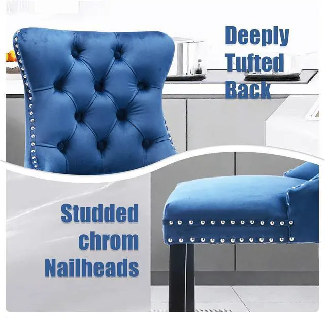 SUPERIOR MATERIALThis striking velvet upholstered dining chair. With its luxuriously soft velvet upholstery and stylish solid wood legs, this versatile chair will elevate any dining area. Silver accent studs around the cushion and back make this chair a highlight in your home and add extra design to the look.
