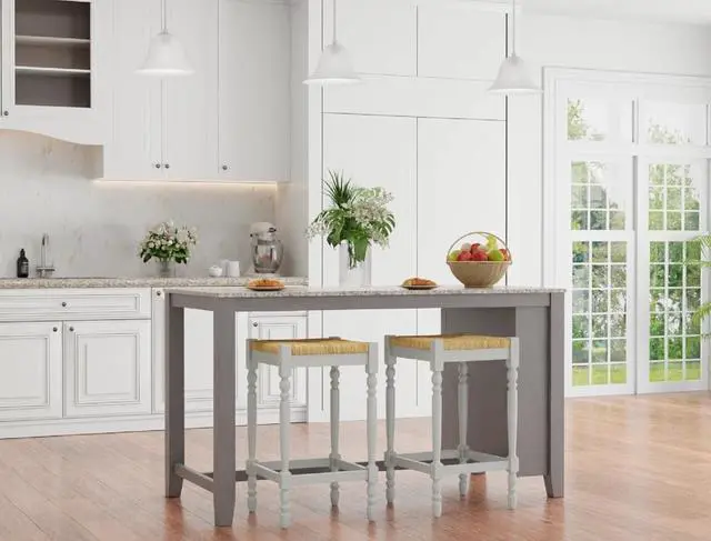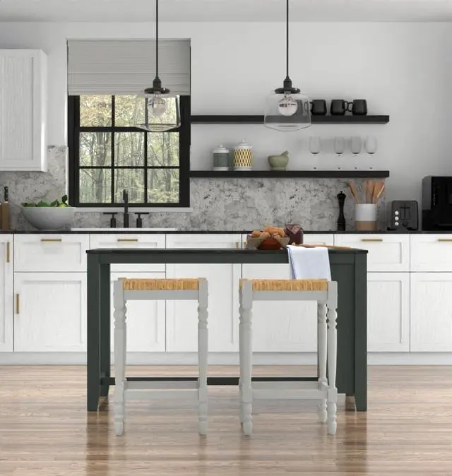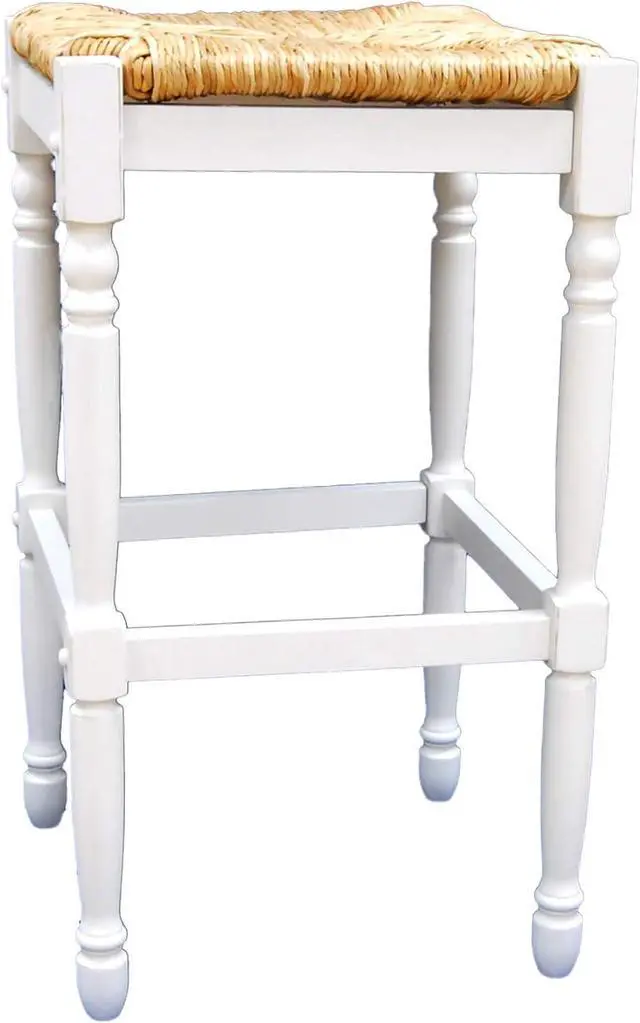 Comfortable rush seat Legs are made from solid Select Asian hardwood Beautiful Multi step hand Finish with rubbed edges for a worn unique look Item dimensions: 16. 5 in W x 16. 5 in D x 29. 25 in H Seat dimensions: 16. 5 in W x 16. 5 in D x 29 in H