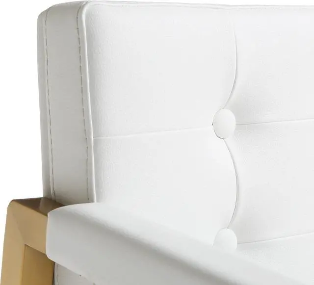 • Sleek And Modern Design: The Exquisite Metal and Leather Bar Stool For Office and Living Room Embodies Luxury. Features A Handmade White Leather Upholstery on the Backrest and Arm Rest and a Stainless Steel Frame with Lustrous Gold Brushed Metal Finish.