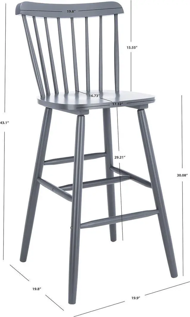 Full dimensions are 19.9 " wide x 19.8 " deep x 43.1 " high with a seat height of 30.08 "