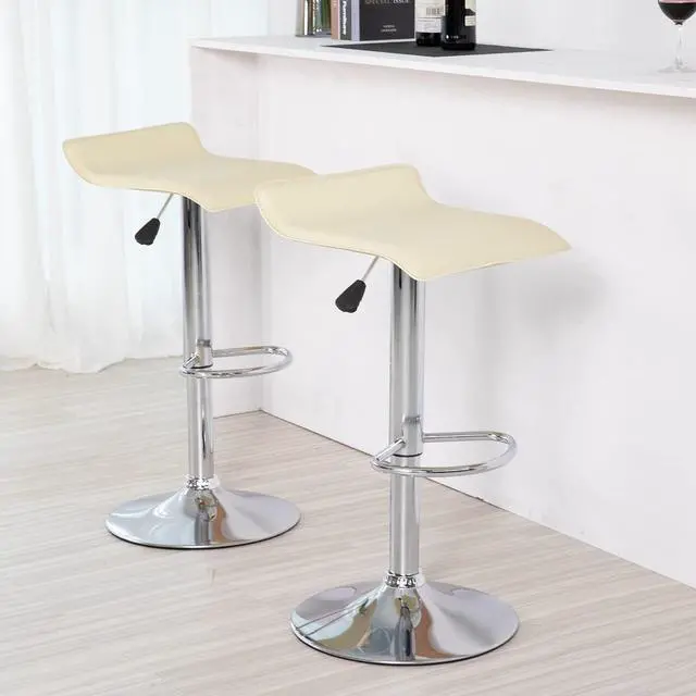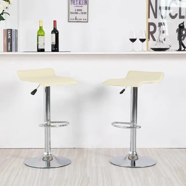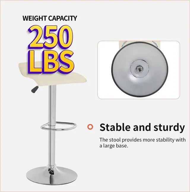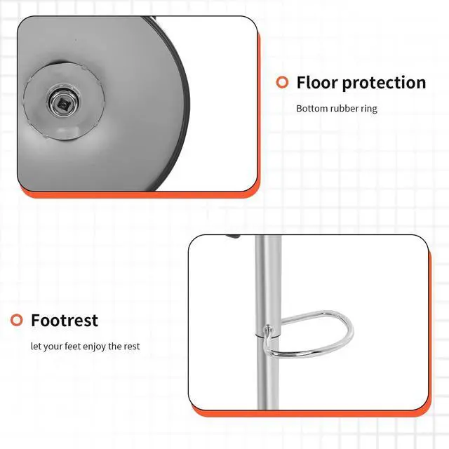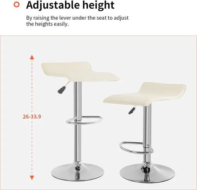 HEIGHT ADJUSTABLE BARSTOOLSThe side pneumatic handle can adjust the barstool set of 2 from 26" to 33.9 ", which is convenient and safe. The semicircular footrest is sturdy and durable, and the rubber ring on the base prevents your floor from scratching. In the meantime, barstools 2 features 360°free rotation.