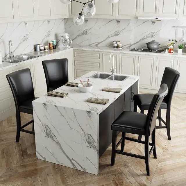 Cloud-like Comfort: The bar stools are made with skin-friendly, high-quality faux leather and 30kg/m³ high-density cushion with 43% high rebound rate, ensuring a luxurious and comfortable seating experience that doesn' t easily collapse. The wider and deeper armless seat space is spacious, allowing you to change sitting positions at will, and you won' t feel tired even after sitting for a long time, providing a comfortable experience