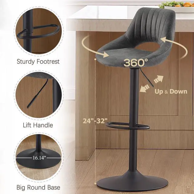 360 Swivel and Adjustable Height Barstools: You could adjust the barstools' height from 24 inches to 32 inches depending on your need with the air-lift handle; The 360-degree swivel function allow easy direction adjustment