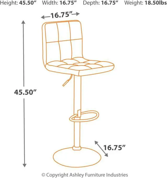 SET OF 2: Includes 2 bar stool chairs, each measuring 16.75 " W x 16.75 " D x 45.5 " H. Chair height ranges from 24.5 - 33.5 ", so your table seating options are practically limitless