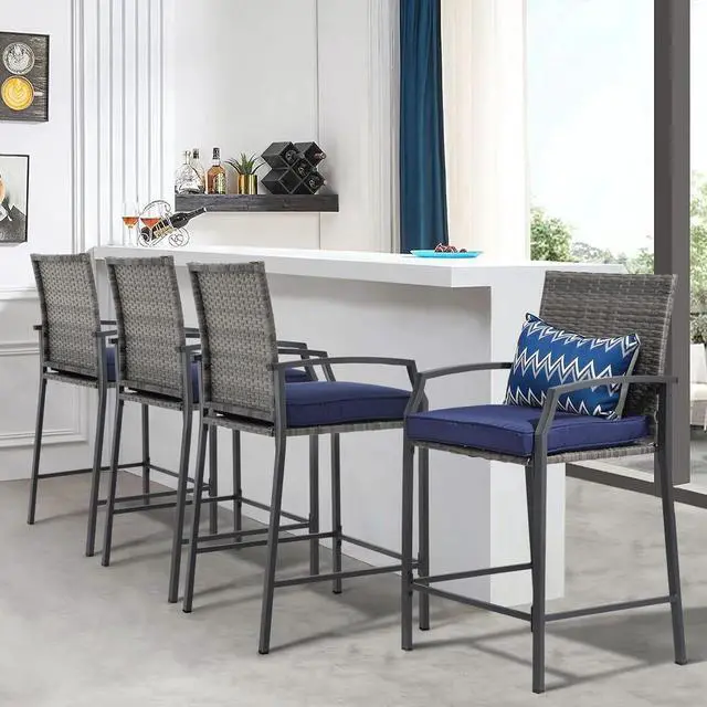 Versatile Application: Our 4 pieces rattan bar stools with a classic style are a perfect option to any indoor outdoor entertainment, such as a single party or friends gathering at garden, porch, poolside, balcony, deck, etc., and can also be used for indoor kitchen counter bar dining