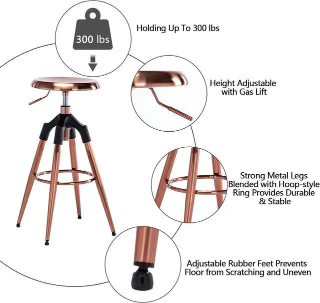 • HIGH QUALITY MATERIALS SELECTED-This round bar stools are made of highly qualified metal provides robust and durable with a weight capacity of holding up to 300 lbs.