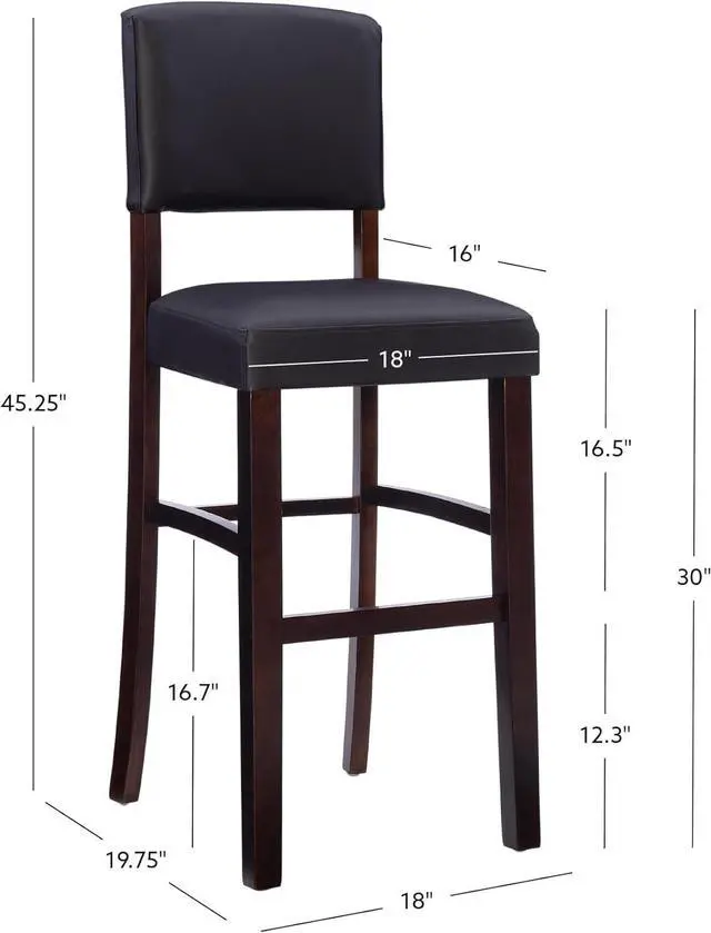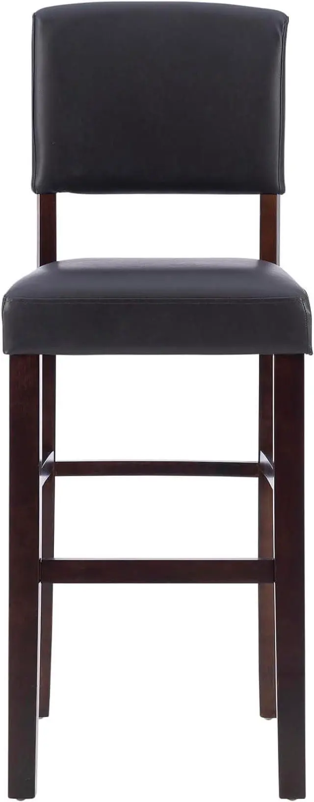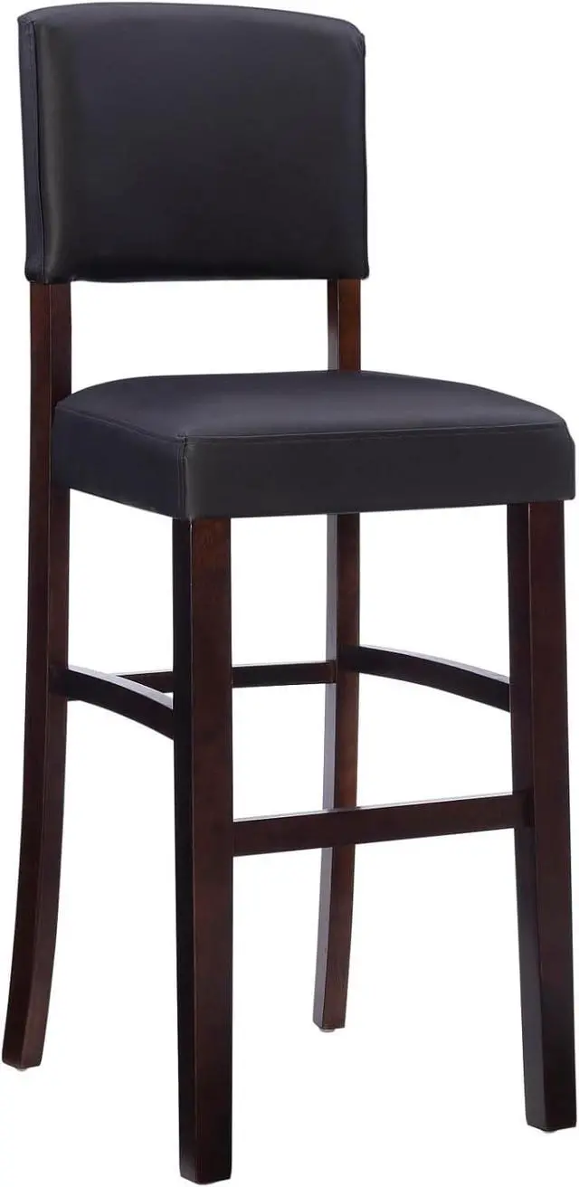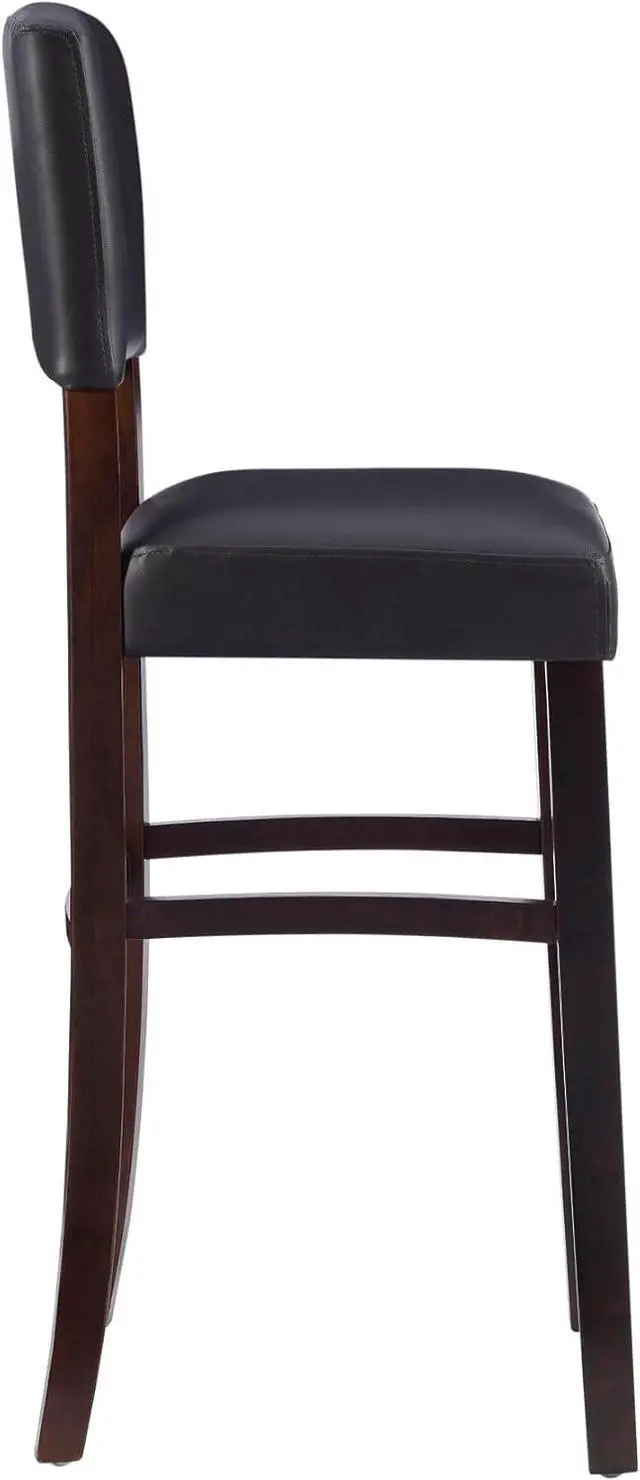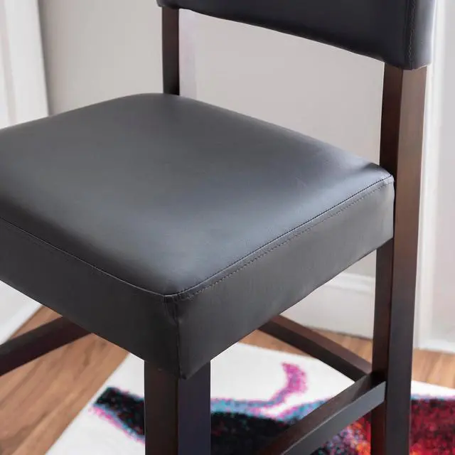 This stool has a padded vinyl seat and back with slightly tapered legs for a more elegant look