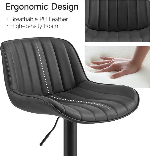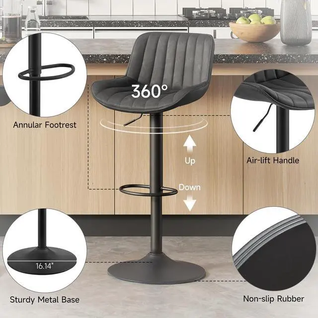 • Smooth SwivelExperience 360-degree rotation with ease. The swivel bar stools with back allow for smooth and quiet movement, enabling you to stay engaged in conversations while savoring your favorite drink or meal.