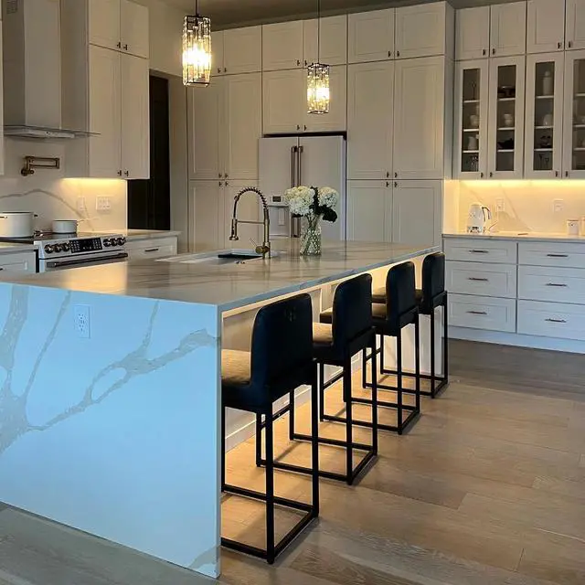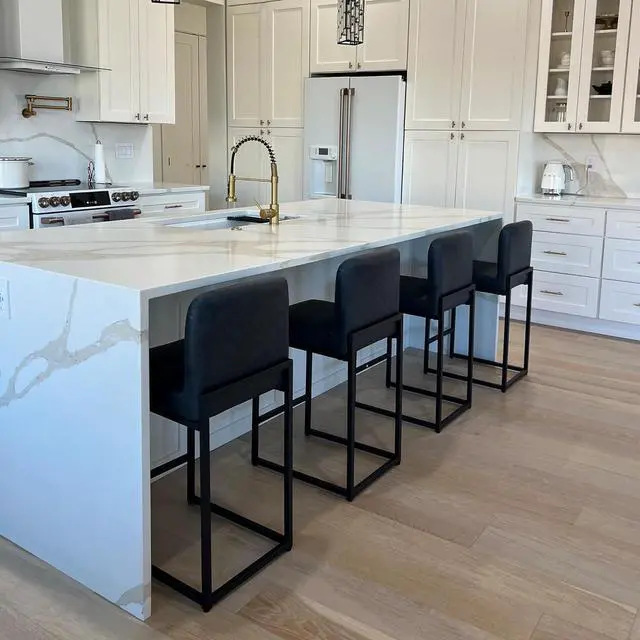 Premium Quality Materials: Crafted from high-quality materials, these barstools are built to withstand daily use. The sturdy frame ensures stability and durability, while the cushioned seat offers plush comfort. With a scratch-resistant seat surface, our barstools can withstand daily use without showing signs of wear and tear, maintaining their pristine appearance for years to come