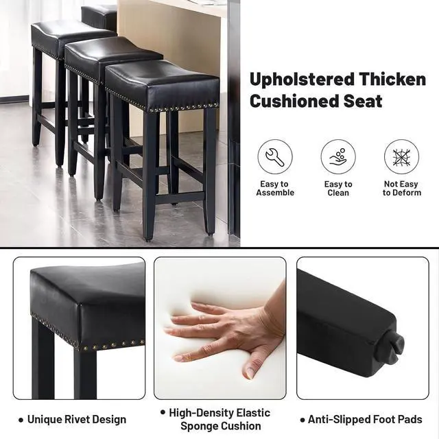 [Elegant and Stylish PU Leather]-The premium PU leather upholstery paired with soft cushion and unique rivet design grace up your home decor with retro flair. Easy to clean and maintain, only use tissue to wipe out dust on bar stools. When you have a leisure time with your friends, Striking looks is not only amazing among your friends, but also can ensure your guests and you have a nice day.