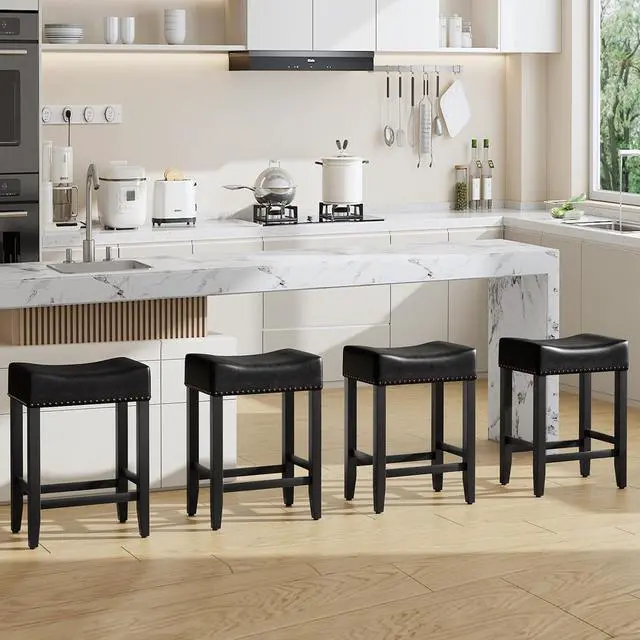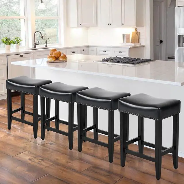 [Soft Saddle Cushion Design]-The bar stools set of 4 will create a nice sitting experience for you with its comfortable saddle seat. The saddle stool filling with high-density elastic sponge provides you a loose, comfortable, spread-out, soft world which can make you fully relax yourself. (Cushion