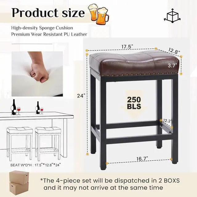 Comfortable & Ergonomic Design These counter height bar stools feature a soft ergonomic saddle seat with high-density sponge cushion and built-in footrest, providing optimal support and comfort during extended sitting at kitchen islands, home bars, or dining tables.