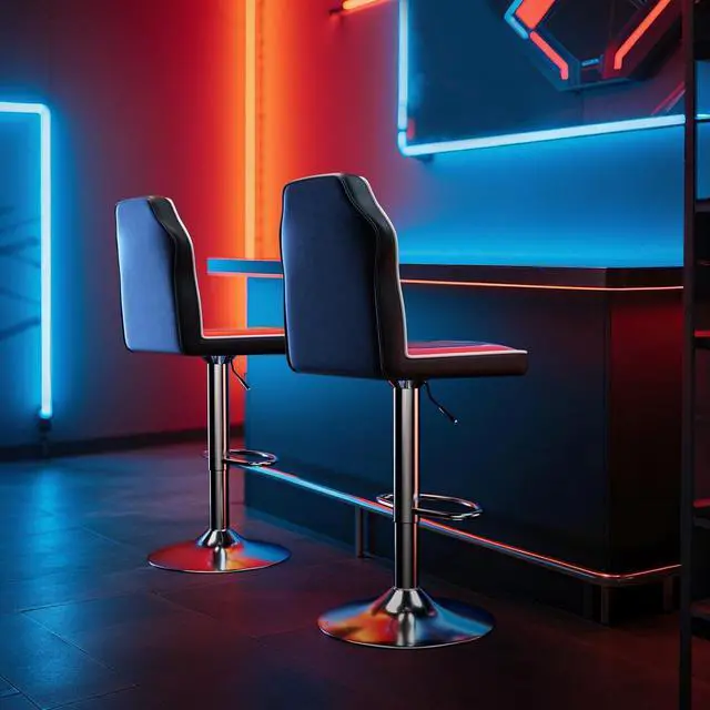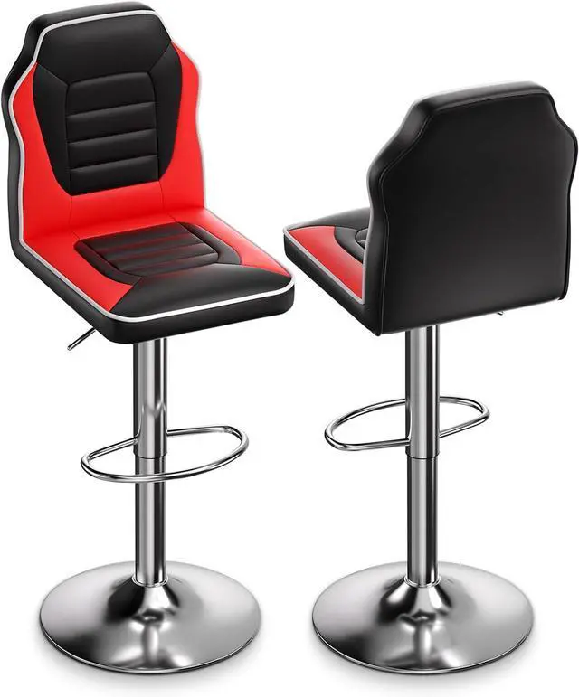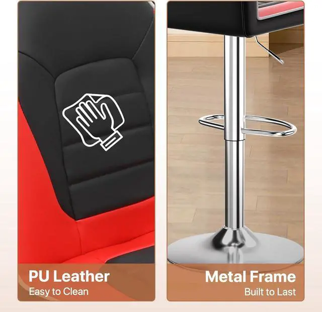 Easily Adjusted: Its height can be adjustable from counter to bar height22" to 30" with an easy pull of a handle located underneath the seat. Plus, a chrome footrest even offers extra support for users.