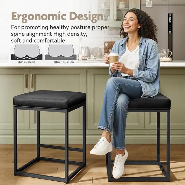 Sturdy & Stylish Kitchen Stools Solid metal frame with built-in footrest makes the counter stool more sturdy, and could be used for years without problem. Nicely stitched faux leather with matte black powder-coated steel base, the modern and minimalist design of the bar stool fits in with both contemporary and traditional decor