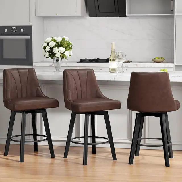 Bar Stool Set of 3: The 3pcs swivel bar chair set features a stylish shell-textured backrest that complements any interior design, while the wooden legs have a brushed black finish, lending a vintage feel to your space.
