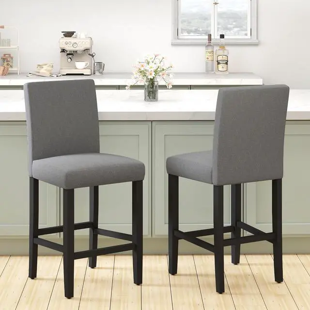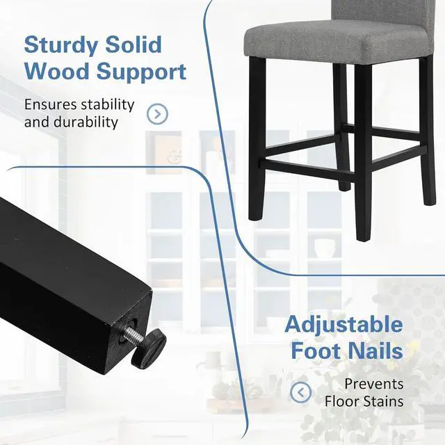 Sturdy And Durable: Bar chair constructed of solid wood frame and wood legs, which gives you a strong support for long-lasting use; Adjustable feet pads also effectively adds to the stability and prevent the floor from being scratched