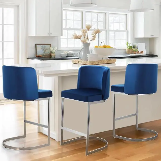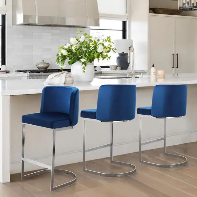 Contemporary StyleChoose between faux leather or velvet seating in this 26" modern counter stool, enhanced by a sleek chrome-plated finish for a touch of sophistication. While the bar chair is available in four stylish colors: pu leather white, velvet cream white, velvet blue, and pu leather black. Whether you prefer the luxurious feel of velvet or the sleek look of PU leather, these bar chairs cater to different modern styles and individual tastes.