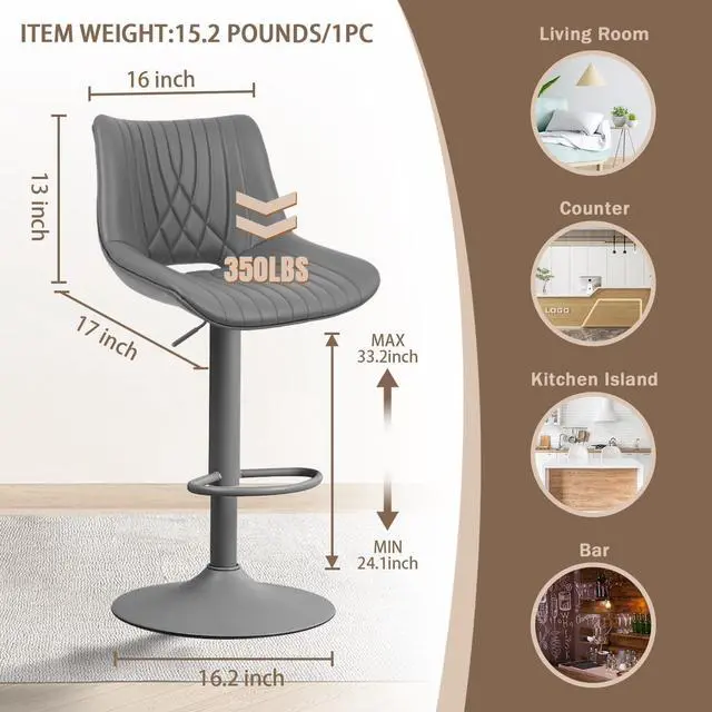 Super Easy to Assemble: The installation of each bar stool takes only 3-5 minutes, and it comes with assembly instructions, screws, and assembly tools for simple assembly. The durable hydraulics rod has been certified by SGS and can support up to 350 lbs. The 16.2 " chrome base provides stability and durability, ensuring that the chair will not wobble or tip over when adjusted to the highest position or moved.
