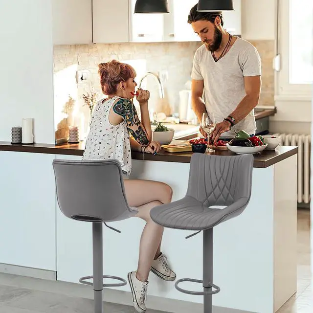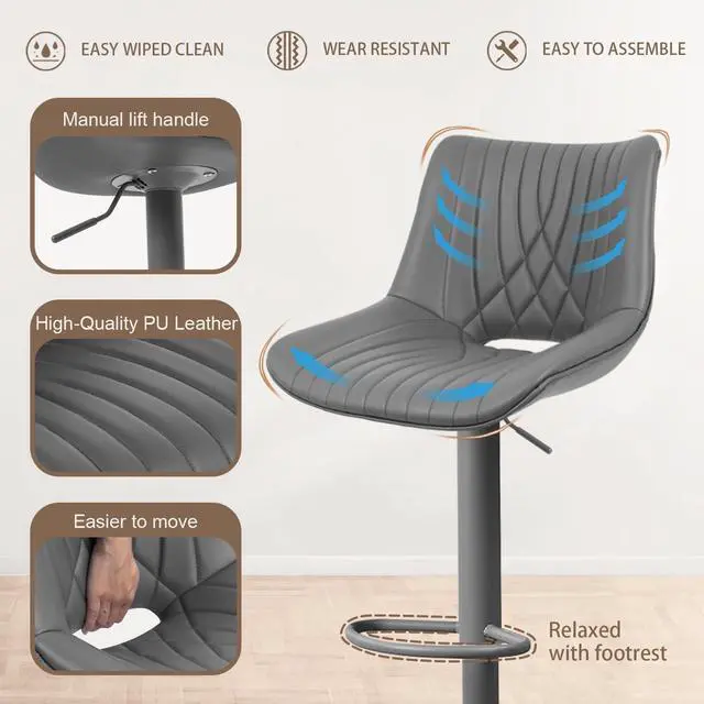 Adjustable and Swivel Function: Experience 360° swivel flexibility with VATROS bar stools, featuring an adjustable seat height ranging from 25.59 " to 33.46 " to accommodate all users. A rubber ring prevents floor scratches and slipping while also reducing noise during movement. Additionally, the barstool seat is designed with cut-out openings for easy lifting and movement. Made of high quality faux PU leather, these counter stools are easy to maintain and can be cleaned with just a damp rag.