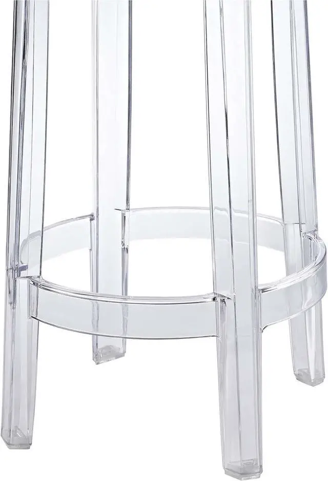 TRANSPARENT CHAIR - Reinvent your surroundings with the iconic silhouette and transparent design of a chic modern bar stool used to inspire a visually clean and creative dining or work environment.