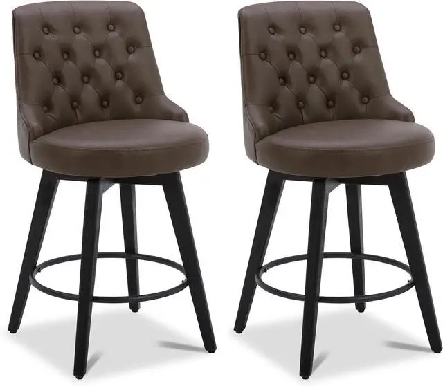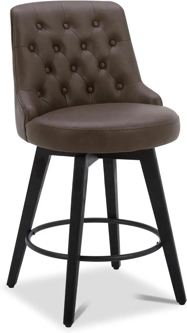 Designed with deep button-tufted and barrel-curved back, this modern farmhouse counter stool is simple and elegant with classic styling for the perfect addition to a dining or kithcen area and offers exceptional comfort