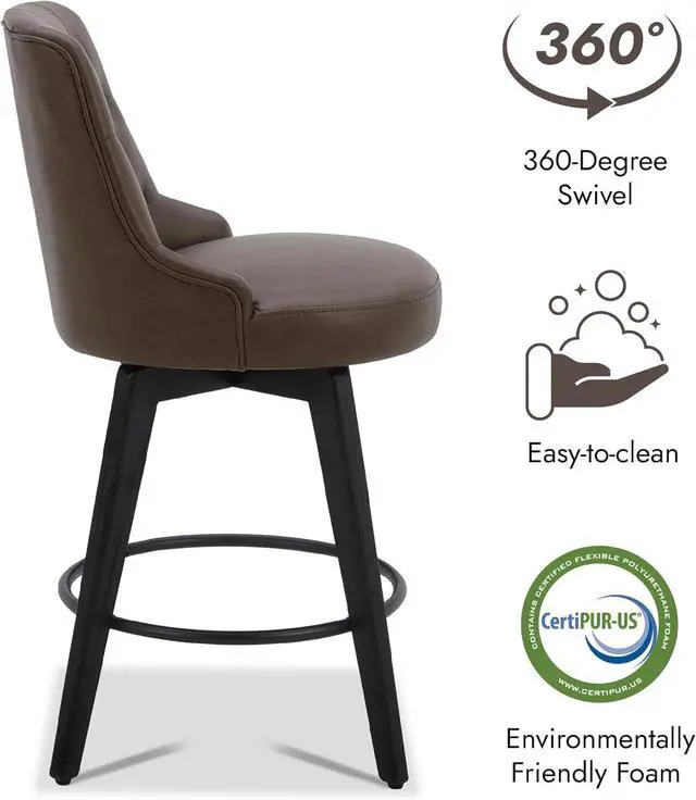 Rounded shape and padded seat, along with 360-degree swivel plate and metal footrest, maximize your comfort and make dining and socializing easy