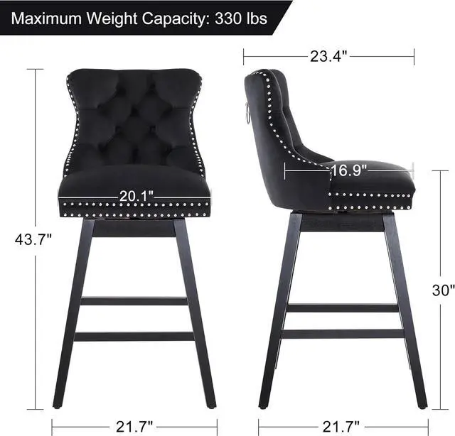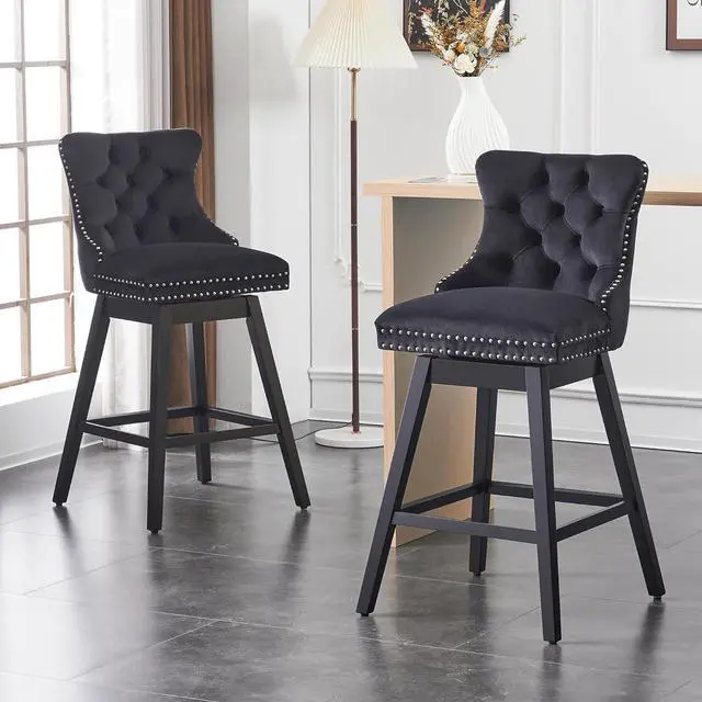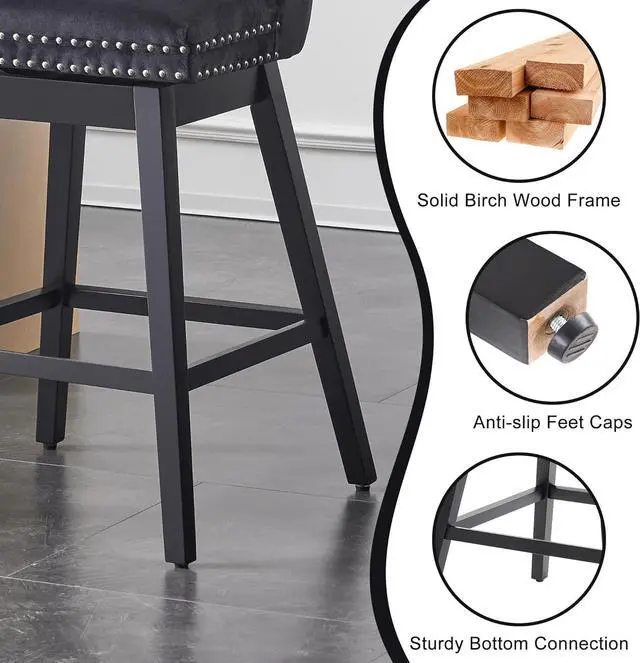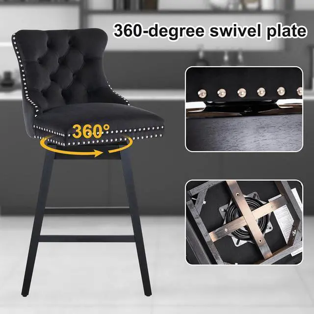Comfortable Seating Experience The swivel bar stools with backs feature velvet fabric with deep button-tufting. The seat surface is filled with high-density memory sponge that provides the best sitting comfort. Whether you' re sipping cocktails or enjoying a meal at your kitchen island, our kicthen bar stools ensures a relaxing experience.