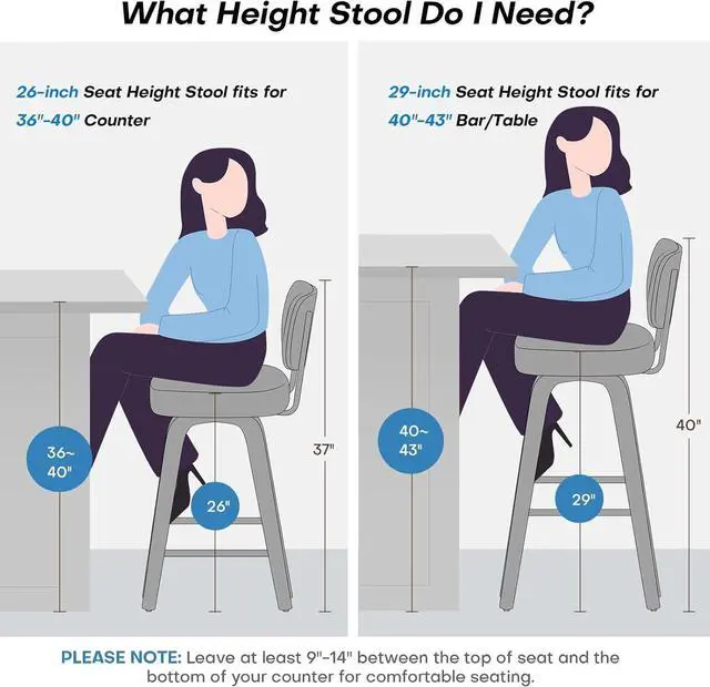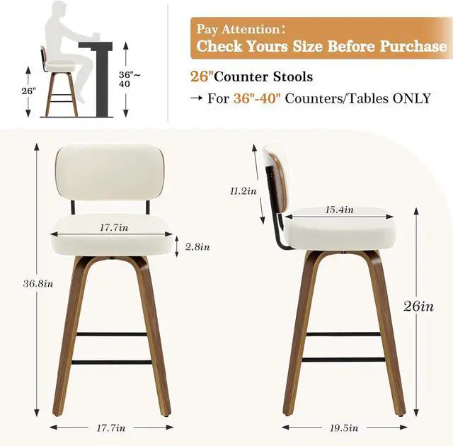 Counter Height (26" ) for 36-40" counters: MEASURE YOUR KITCHEN COUNTER TO ENSURE THE BEST FIT BEFORE PURCHASE. -