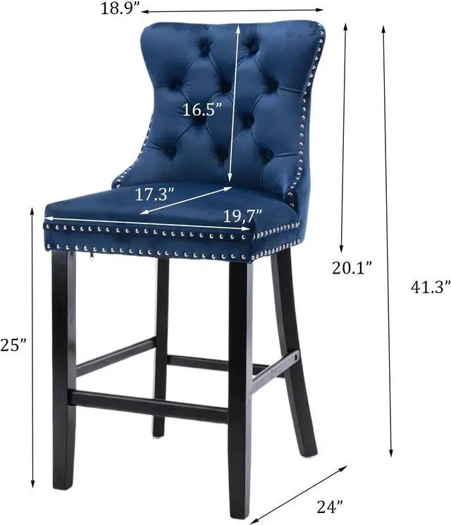 ERGONOMIC DESIGNThe bar chairs feature soft velvet upholstery seating for a great sitting experience. And the ergonomically designed high backrest and footrest provide more support for your body, allowing you to sit relaxed and secure. The 27.2 " seat height stool is perfect for kitchen counters or counter height tables.