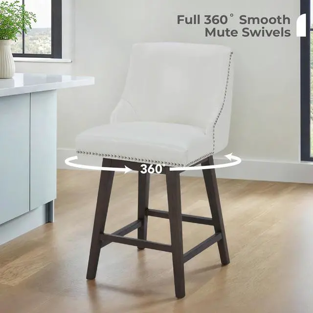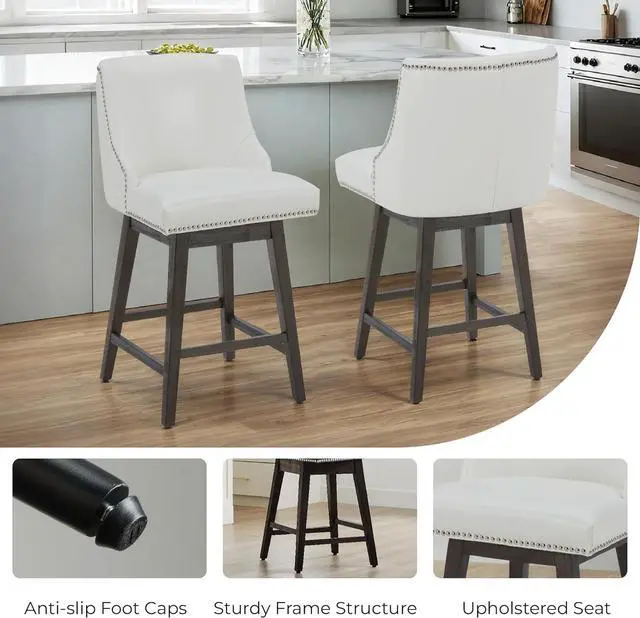 Elegant Nailhead Trim with Versatile Upholstery: Each bar stool is beautifully outlined with hand-applied nailhead accents, adding a refined touch of craftsmanship. Available in PU leather or fabric upholstery, the design highlights smooth textures and timeless eleganceperfect for elevating the look of any kitchen island, counter, or home bar.