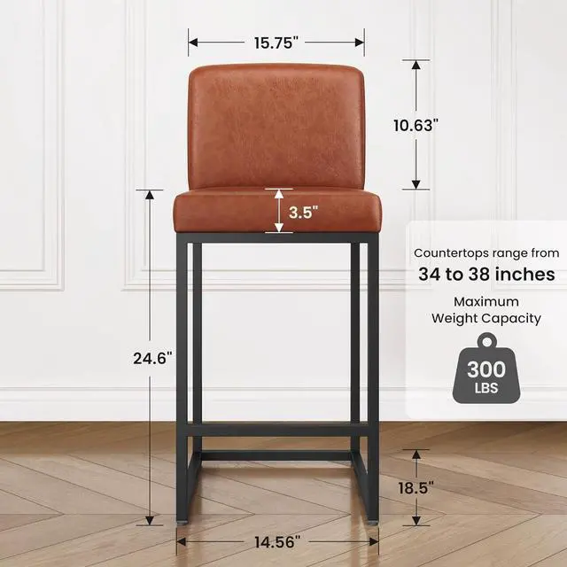 Super Thick CushionThe seat cushion is filled with 3.5 -inch high-density foam designed specifically for bar stools, providing maximum comfort while preventing collapse. Suitable for island or bar heights of 34-38 inches, our stools feature specially treated seats that are highly water-resistant, ensuring long-lasting durability and protection against spills and moisture