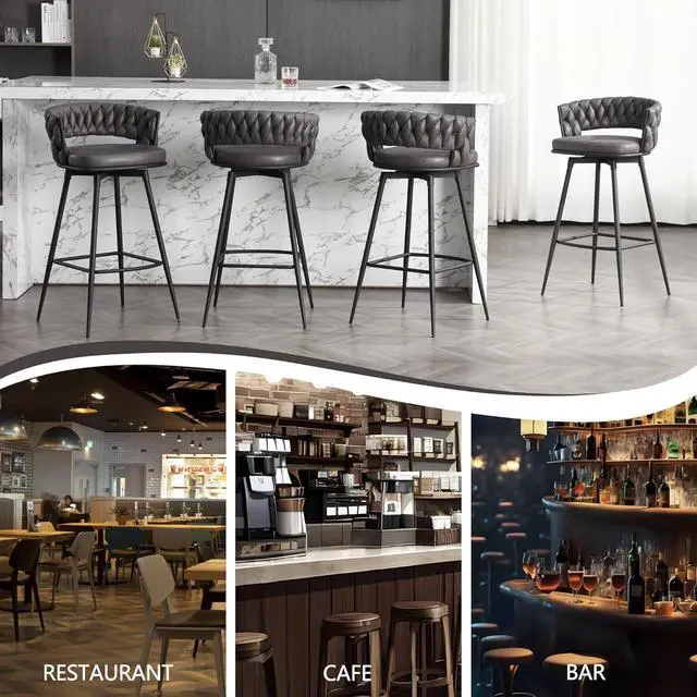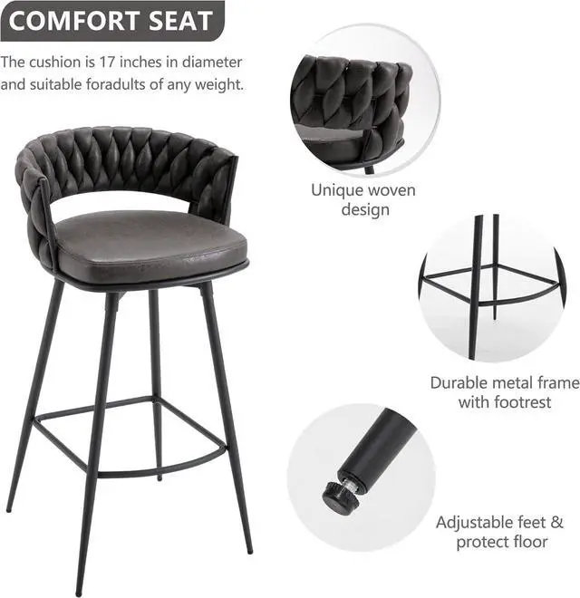 Contemporary Woven Design: Enhance your space with our stunning bar chair featuring a modern style and beautiful color. It effortlessly complements any setting, whether it' s your living room, kitchen, office, or restaurant. These modern bar stools with comfortable footrests you can rest your legs on it to get the most rest when you end a busy day at work.