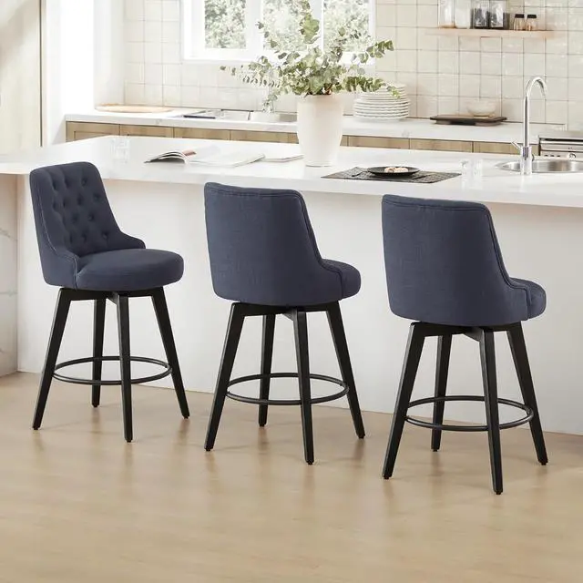 Designed with deep button-tufted and barrel-curved back, this modern farmhouse counter stool is simple and elegant with classic styling for the perfect addition to a dining or kithcen area and offers exceptional comfort