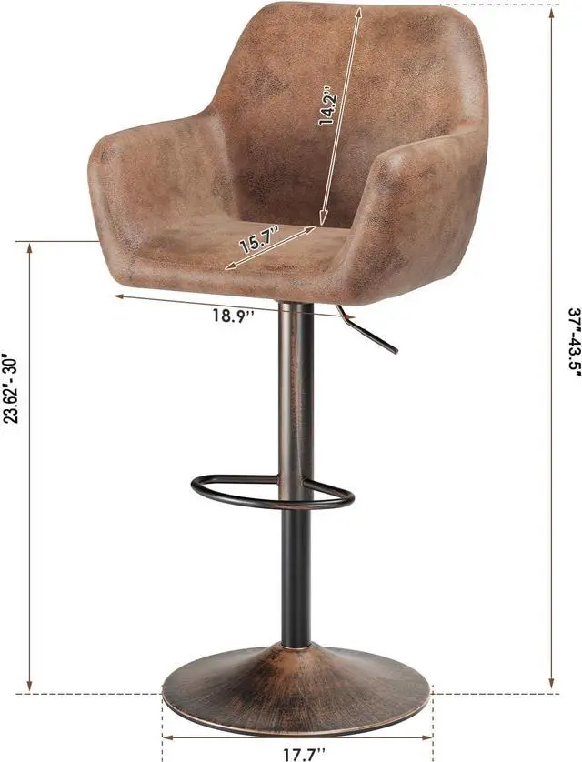 Comfortable Bar Stools: Upholstered in retro faux leather and filled with high-density padded sponge, the bar stool features a cozy seat, ergonomic backrest and armrest. It is comfortable for you to sit on the chair. Equipped with a convenient circular footrest, you can put your feet on it and relax your legs.