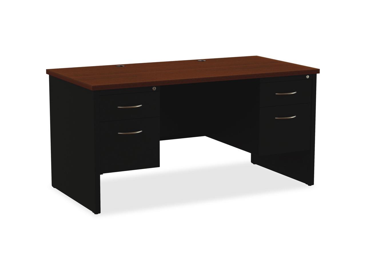 Lorell Double Pedestal Desk 30"x60" Black/Walnut 79141