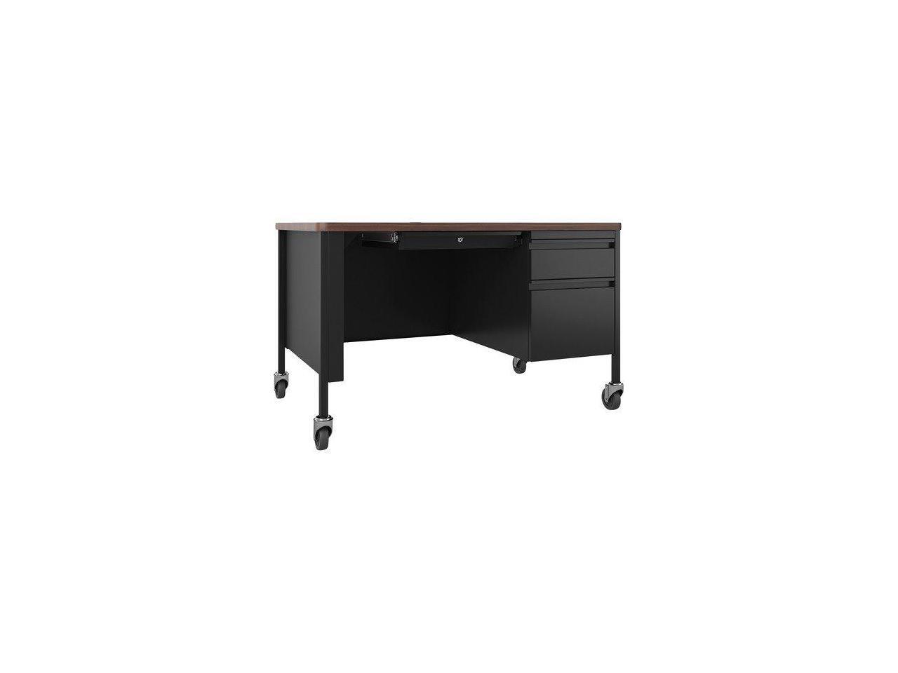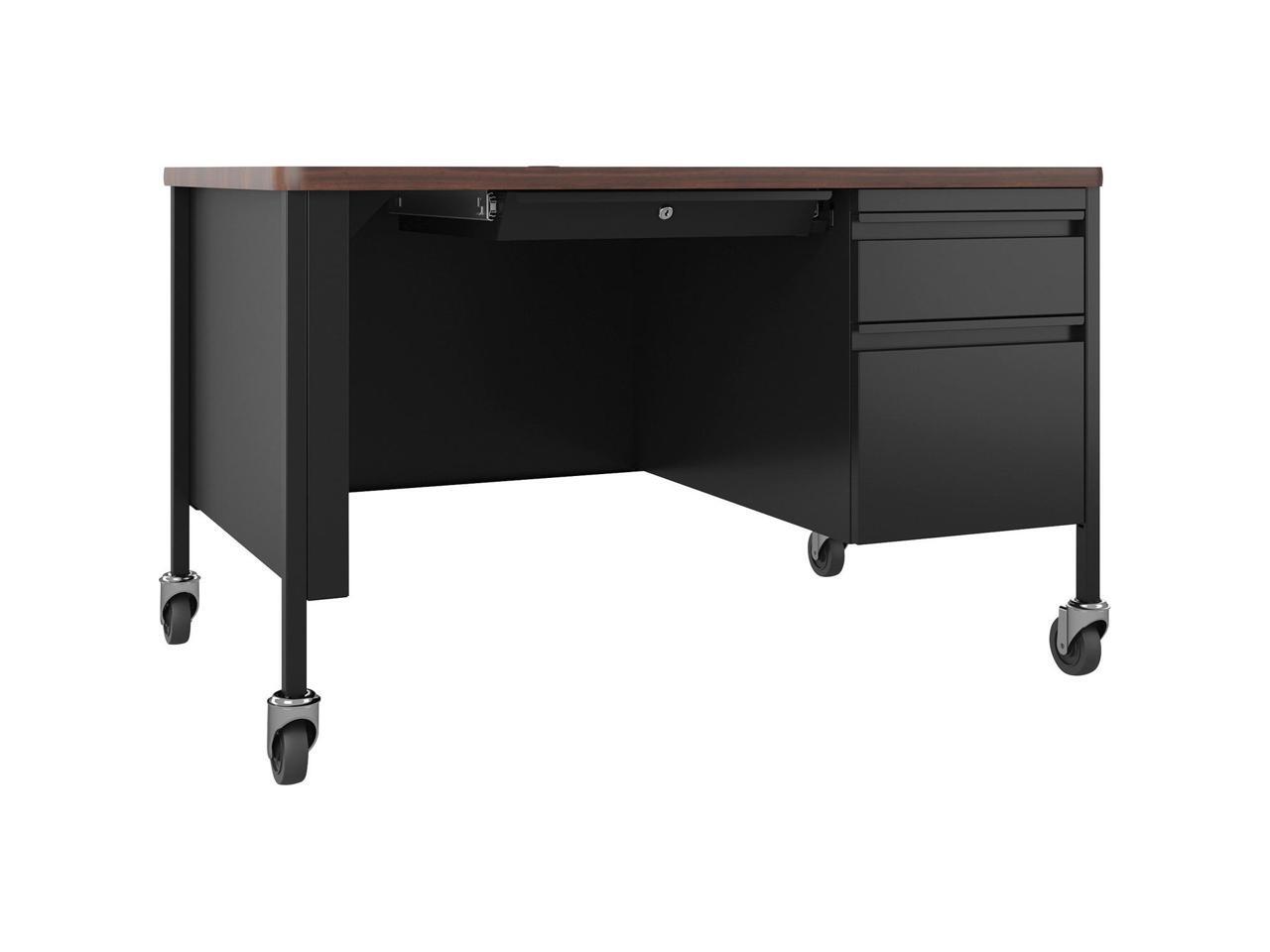 Lorell Desk, Right-Pedestal, Mobile, 48"x30"x29-1/2", Walnut/Black (LLR66943)