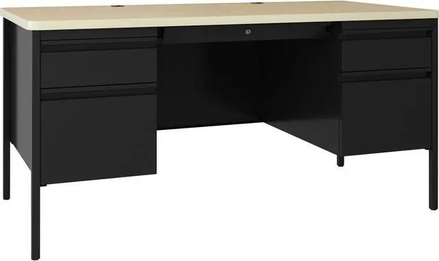 Lorell Desk, Double-Pedestal, 60"x30"x29-1/2" , Maple/Black (LLR03155)