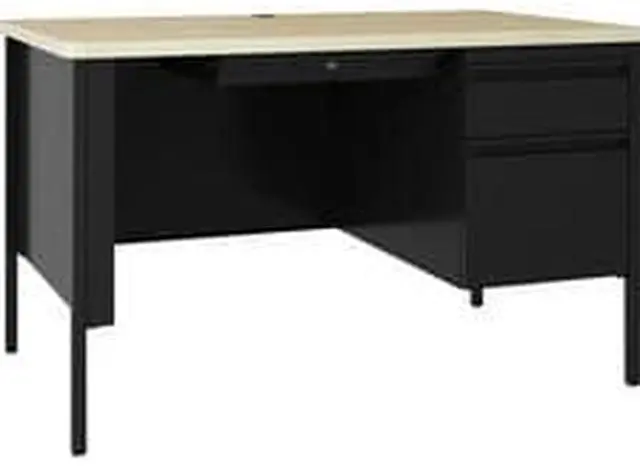 Lorell Desk, Right-Pedestal, Steel, 48"x30"x29-1/2", Maple/Black