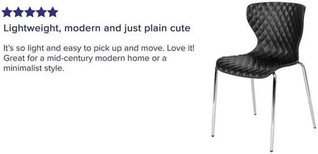 Bring excellent, reliable seating to any modern dining area, waiting room, or office with this black plastic stacking chair. Highlighted with a diamond quilted pattern, this chair offers plenty of style. It's perfect for use as an accent side chair in waiting areas, cafes, lounges, and casual restaurants. This chair boasts a waterfall seat to help reduce leg strain and provide superior comfort for your guests during their stay. No place is off limits as this quilted plastic stack chair will hold up in a classroom, conference room, restaurant dining room or around the home.