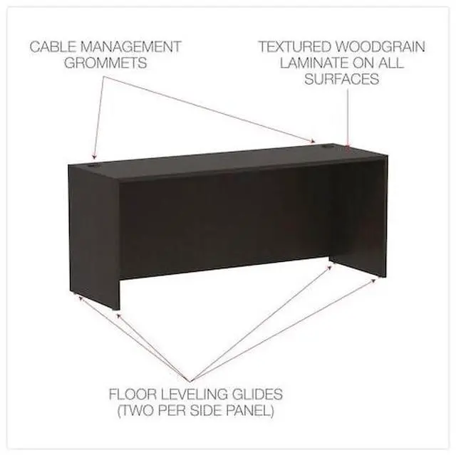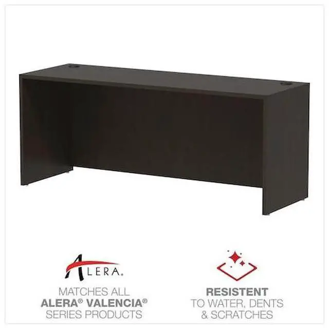 Alera Valencia Series Credenza Shell, 70.88 w X 23.63 d X 29.5 h, EspressoDurable edge banding. Two wire management grommets. Full-height modesty panel.