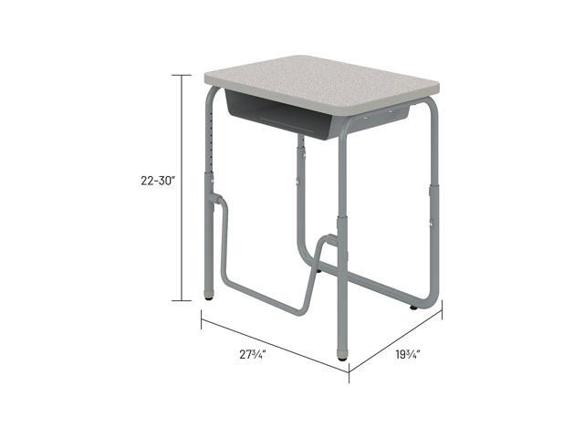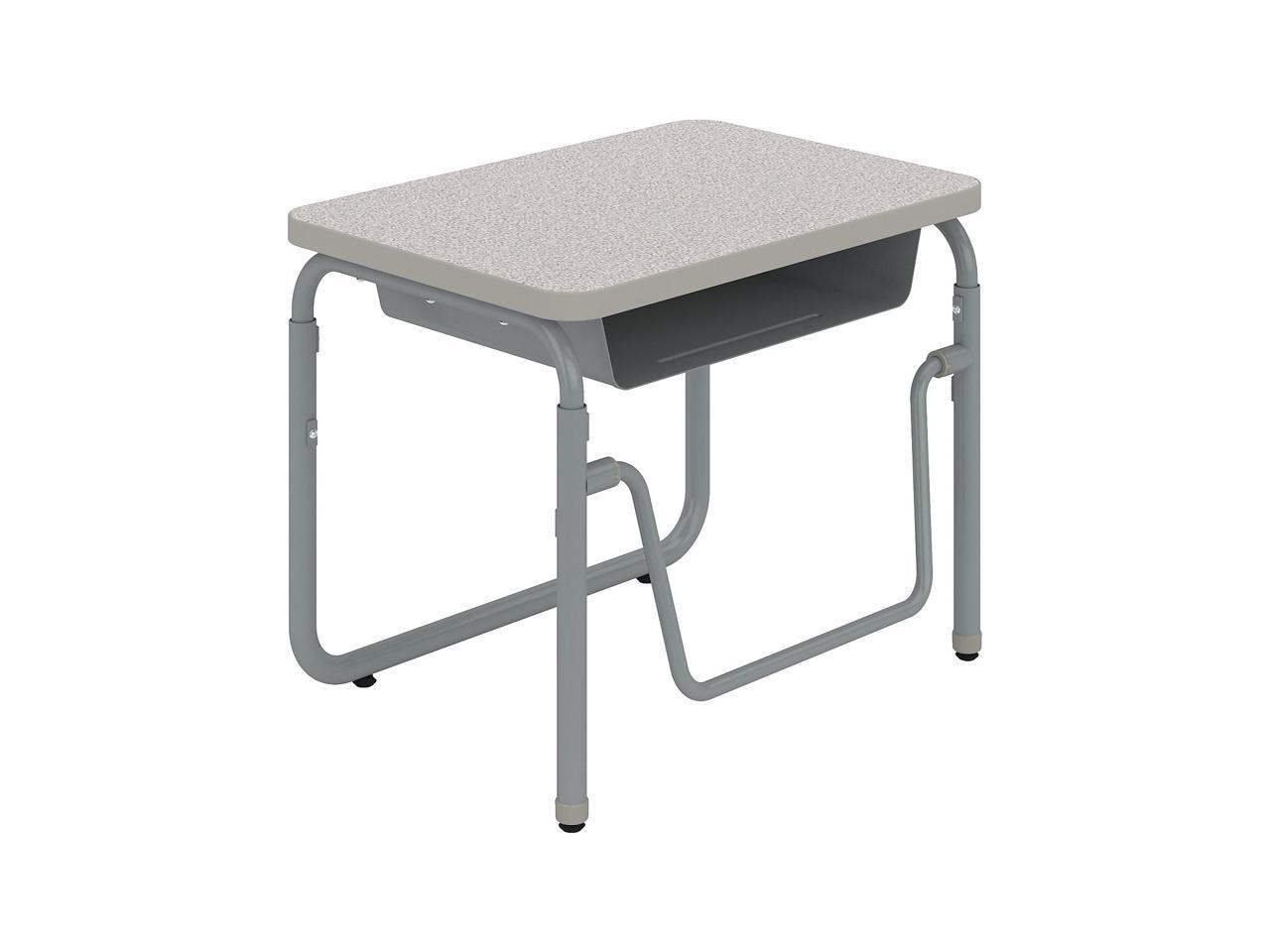 - Easy-to-use, one-handed mechanism flips desk top up and down; handles are located on either side of the desk for easy access.
