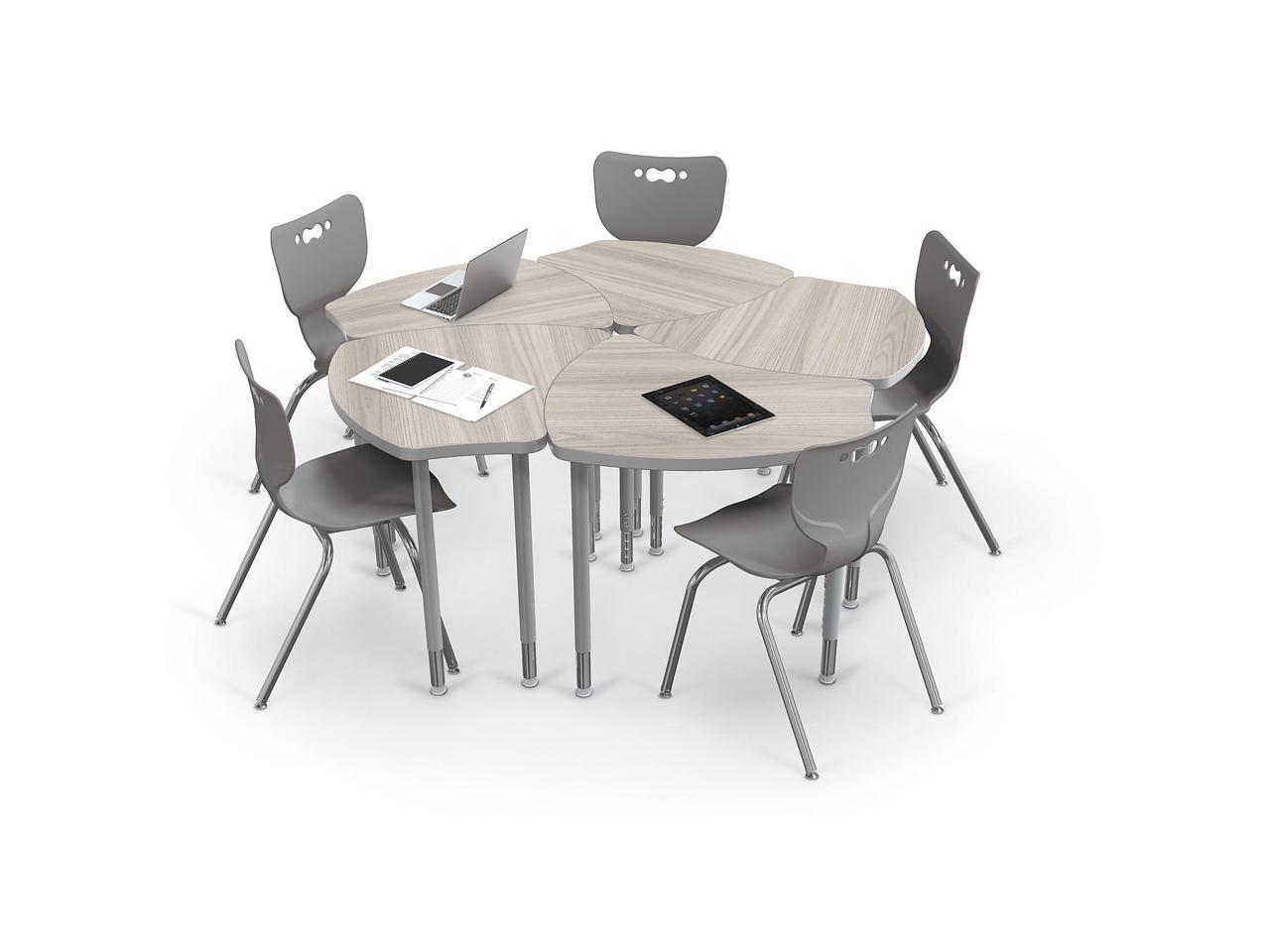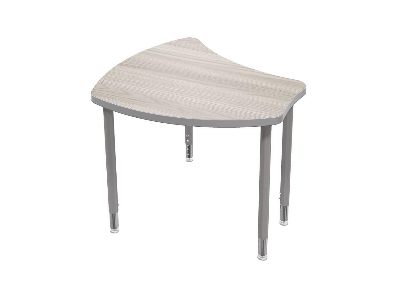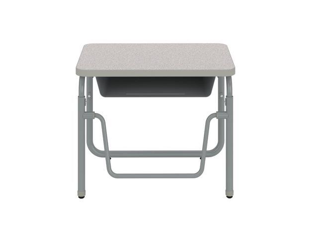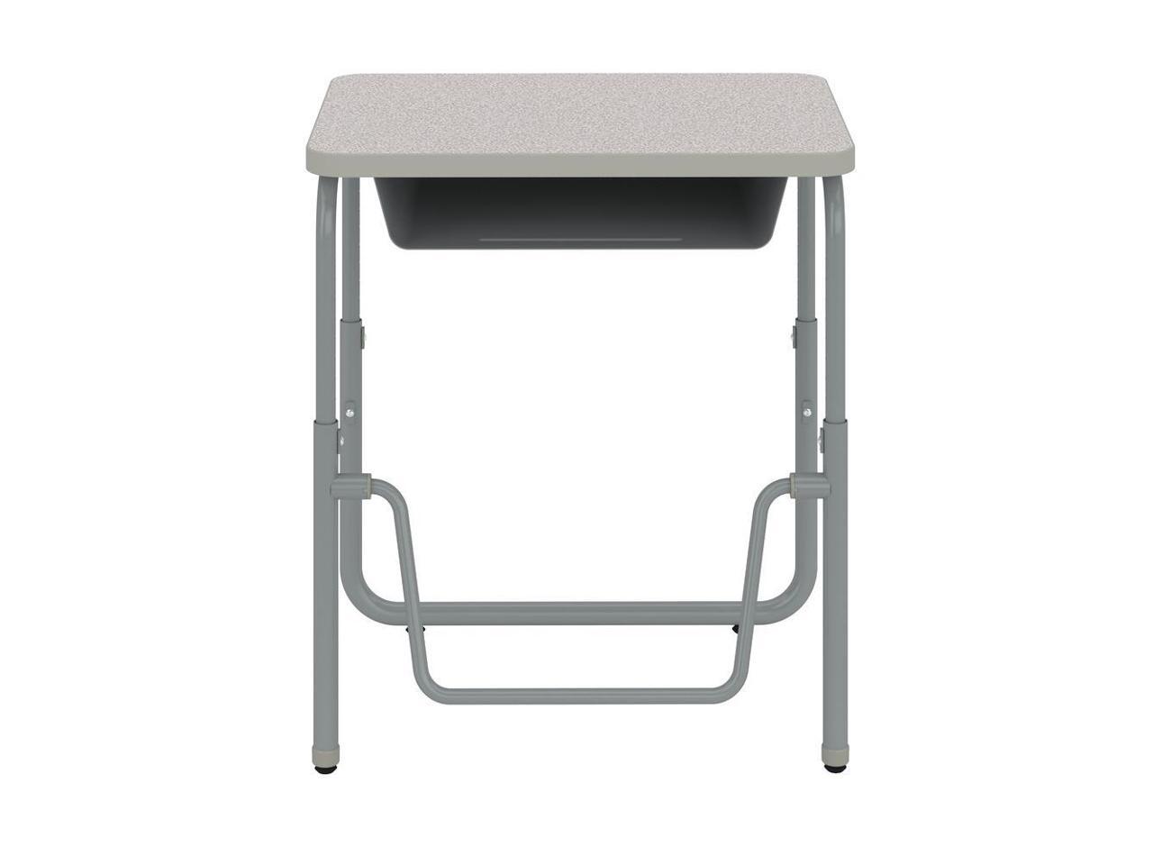 Versatile sit-to-stand height-adjustable student desk comfortably accommodates students as they work or sketch ideas. Meets or exceeds GREENGUARD standard. Accommodates K-12th grade students, as well as adults, at seated height and K-4th grade students at standing height.